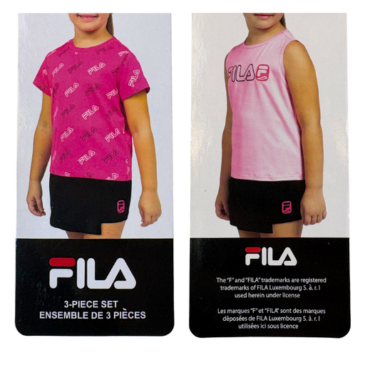 Girls’ Summer 3-Piece Set Pink & Black Shirt, Tank & Skort