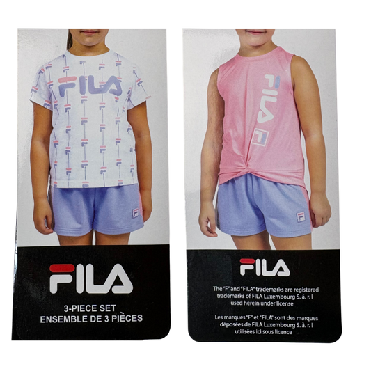 Girls’ Summer 3-Piece Set Pink, Purple & White Shirt, Tank & Shorts
