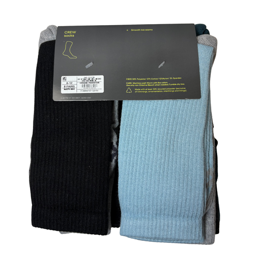 Men’s 6-Pack + 2 Bonus Crew Socks – Fits Shoe Size 6–12