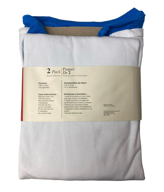 Women's Blue and White V-Neck Long Sleeve T-Shirt 2-Pack - M