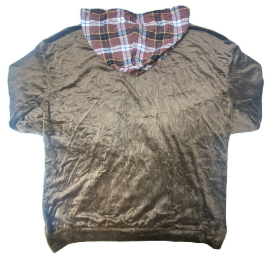 Women's Plaid and Brown Drawstring Sweater - XXL