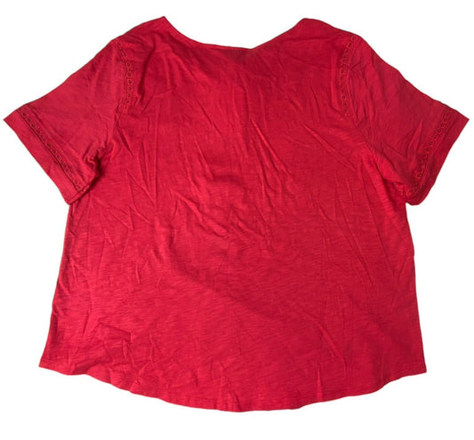 Women's Red Eyelet Short Sleeve T-Shirt - XXL