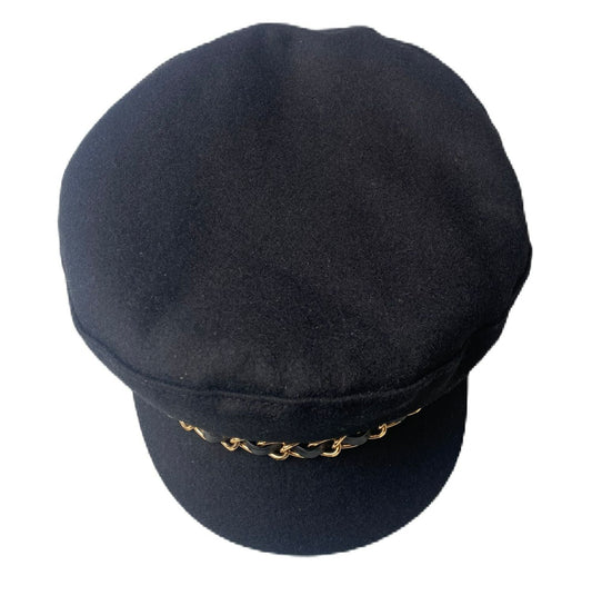Black Puff Hat with Gold Chain - M