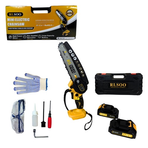 6-Inch Cordless Mini Chainsaw – Portable, Battery-Powered, Includes 2 Batteries & 3 Chains