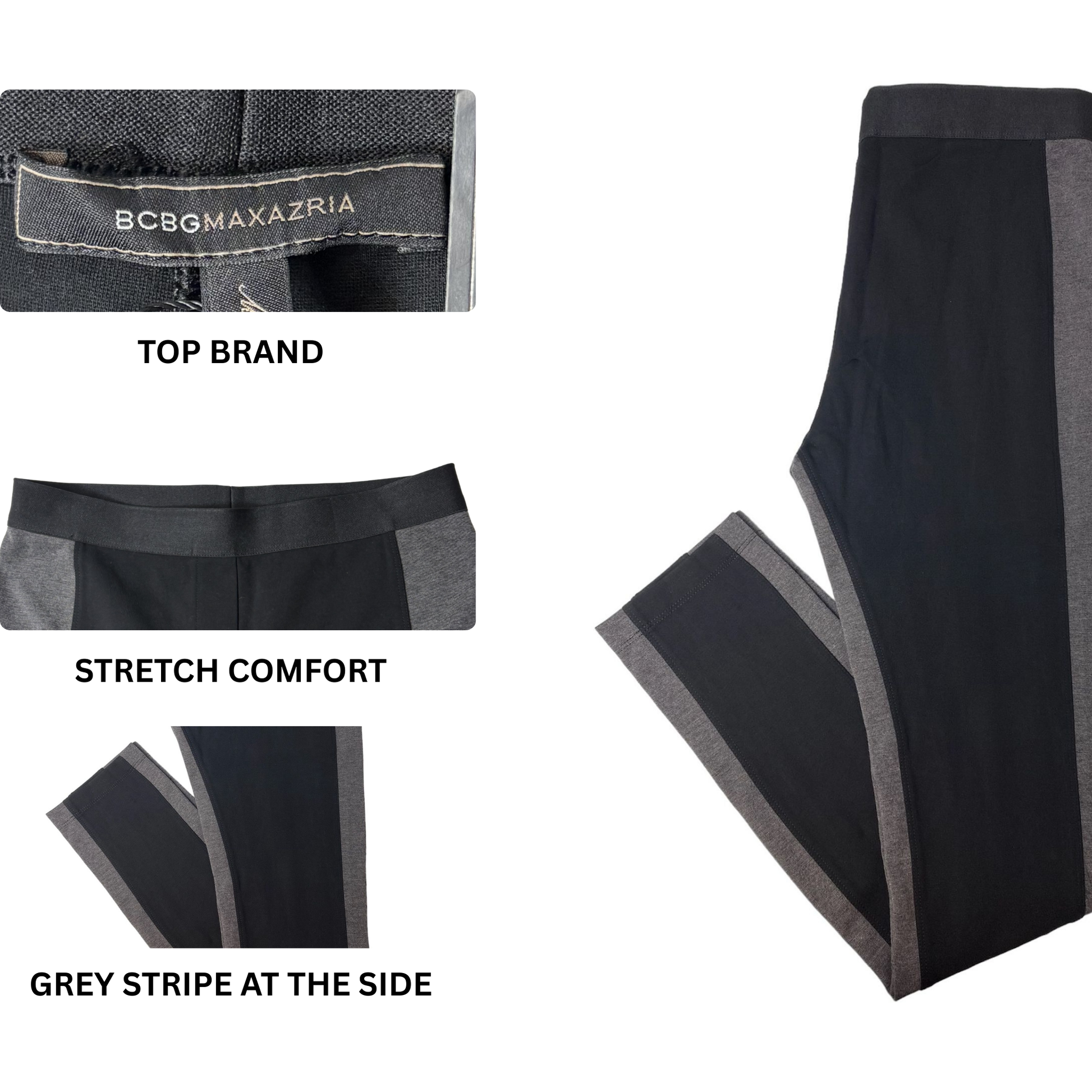 Women's Black and Grey Elastic Waist Leggings - S