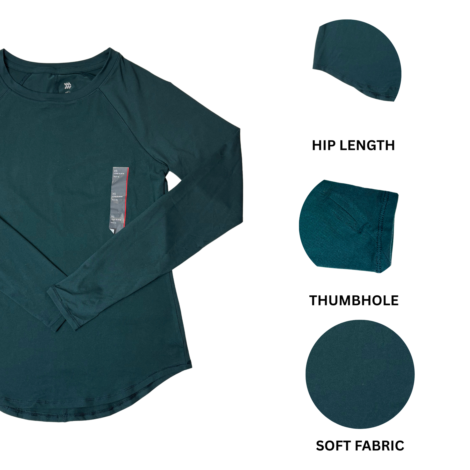 Women's Green Semi-fit Crew Neck Long Sleeve Shirt - XS