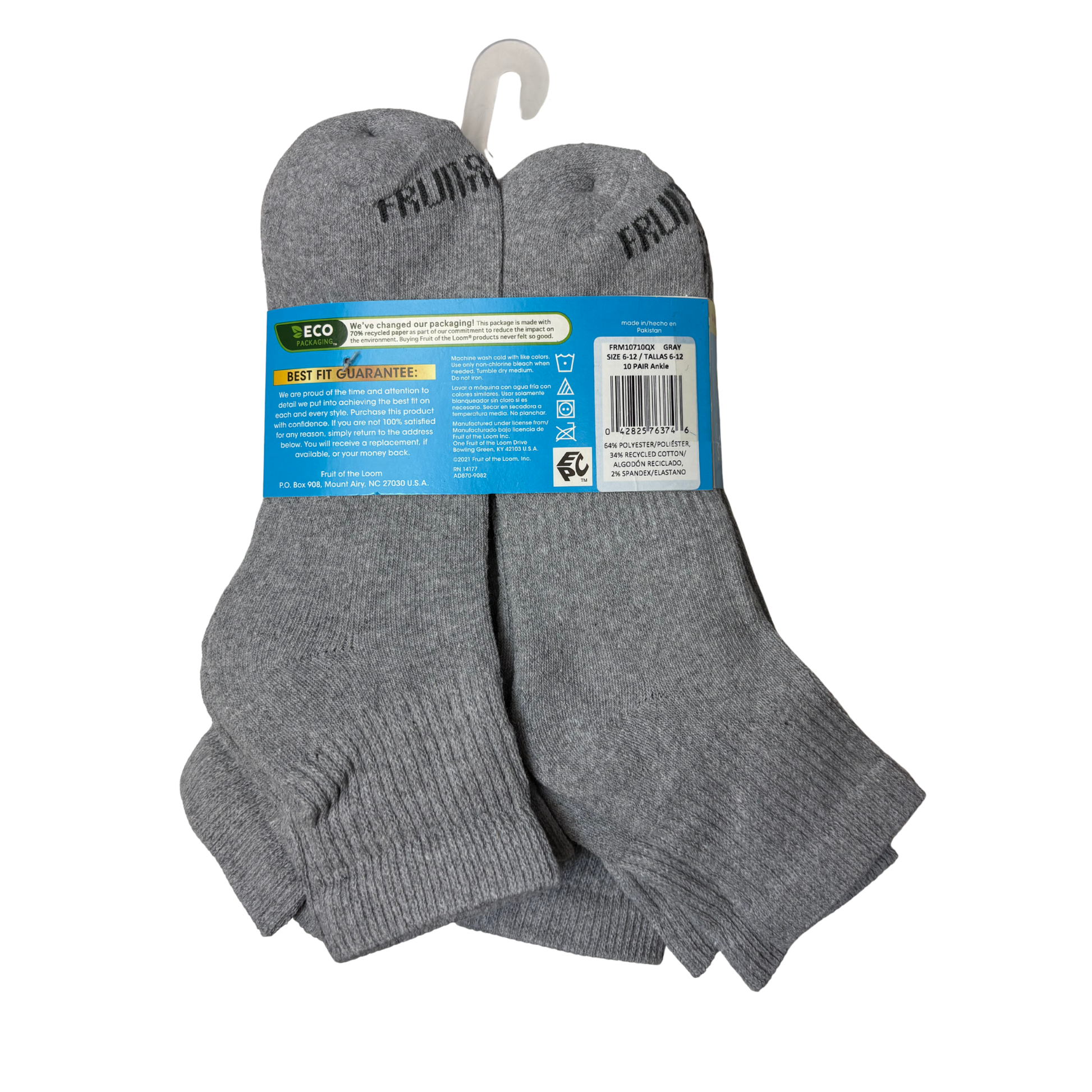 Men’s 10-Pair Ankle Gray Socks Fits Shoe Size 6–12