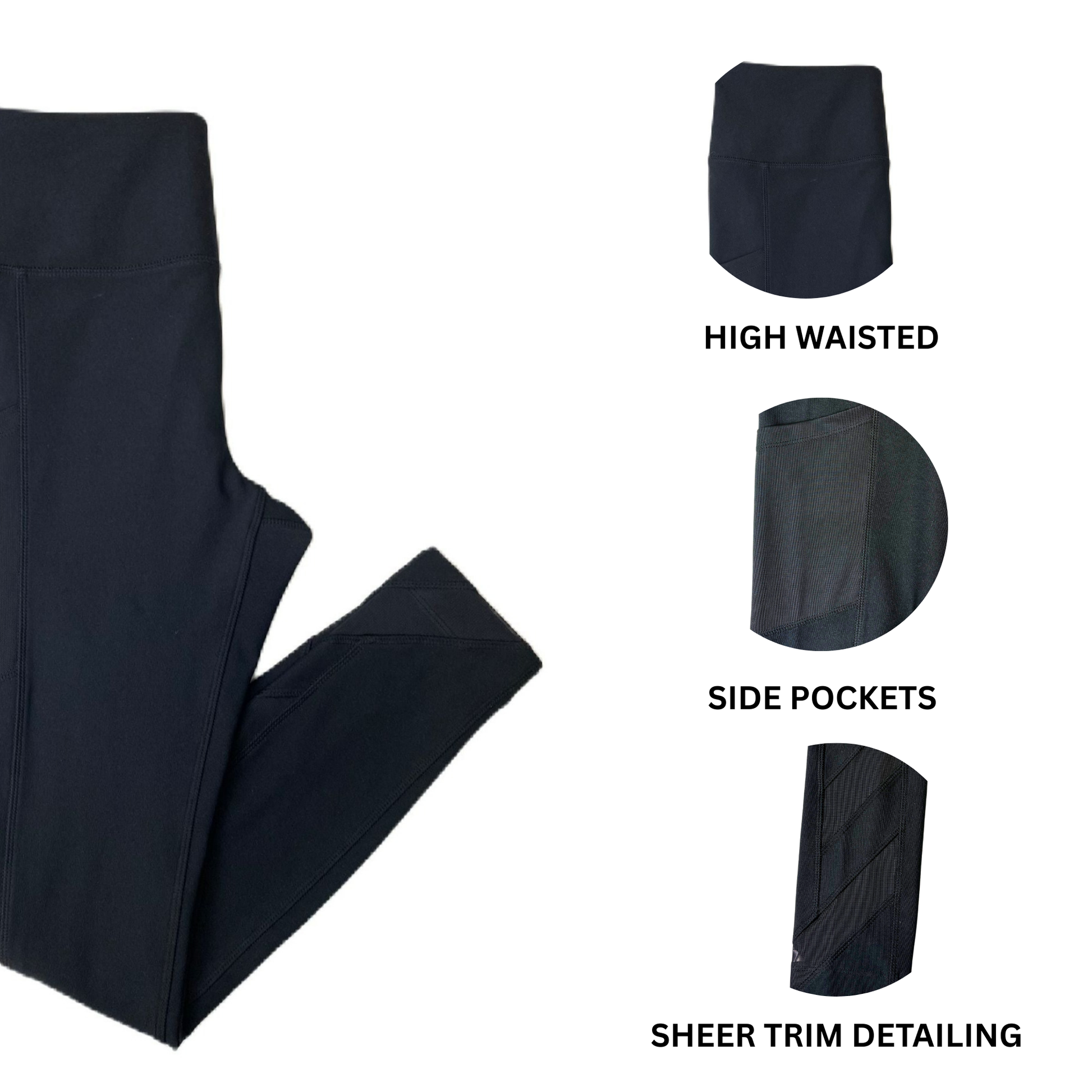 Women's Black Ankle Mesh Active Leggings - S