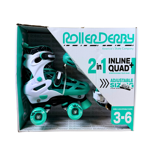 Roller Derby Falcon 2-in-1 Kids Skates, Adjustable Quad & Inline, Size 3–6
