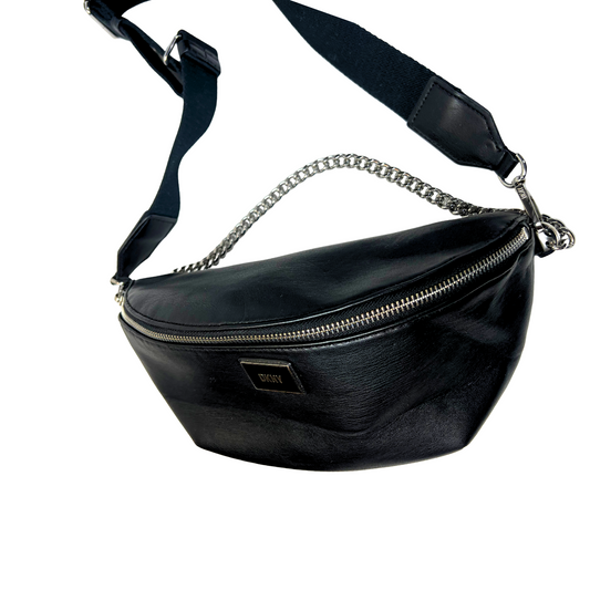 Astrid Sling Belt Bag Crossbody – Black Vegan Leather, Pre-Loved