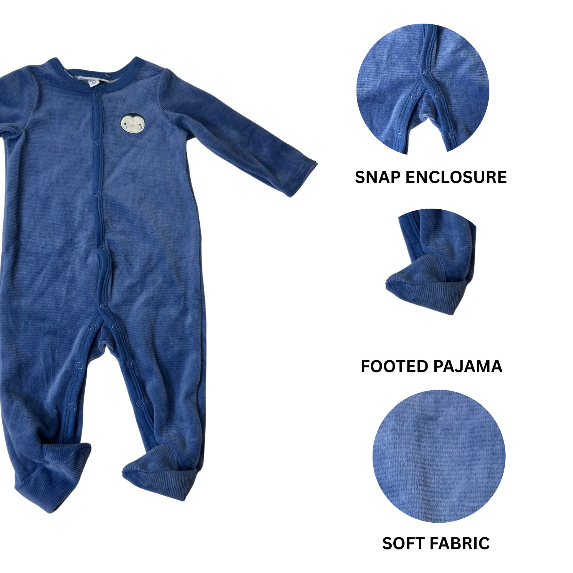 Baby Velour Penguin Sleeper – Blue – Size 6 Months
