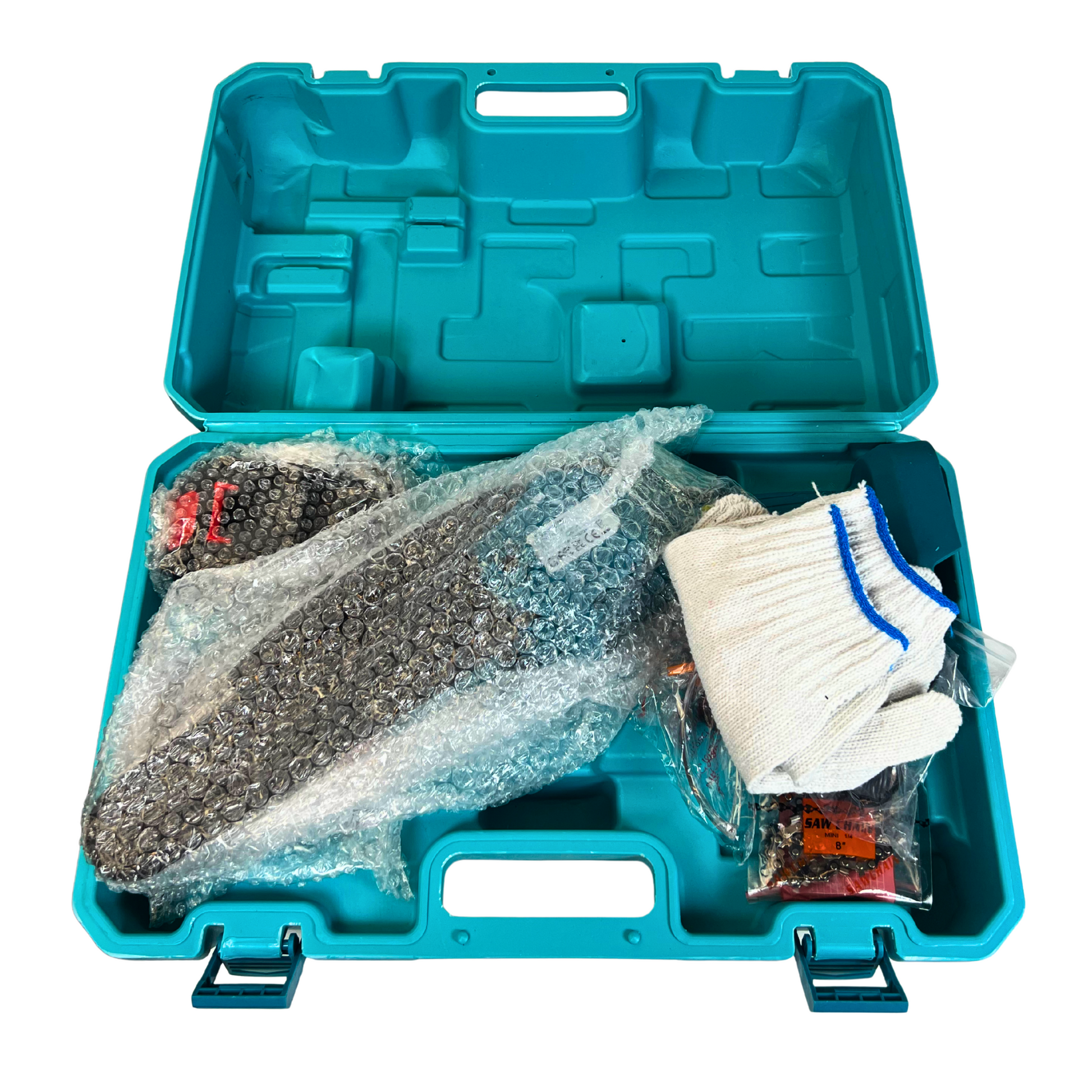 Lightweight cordless mini chainsaw with 8-inch blade, dual long-lasting batteries, ergonomic grip, and built-in oiler system. Perfect for pruning, trimming, and wood cutting.