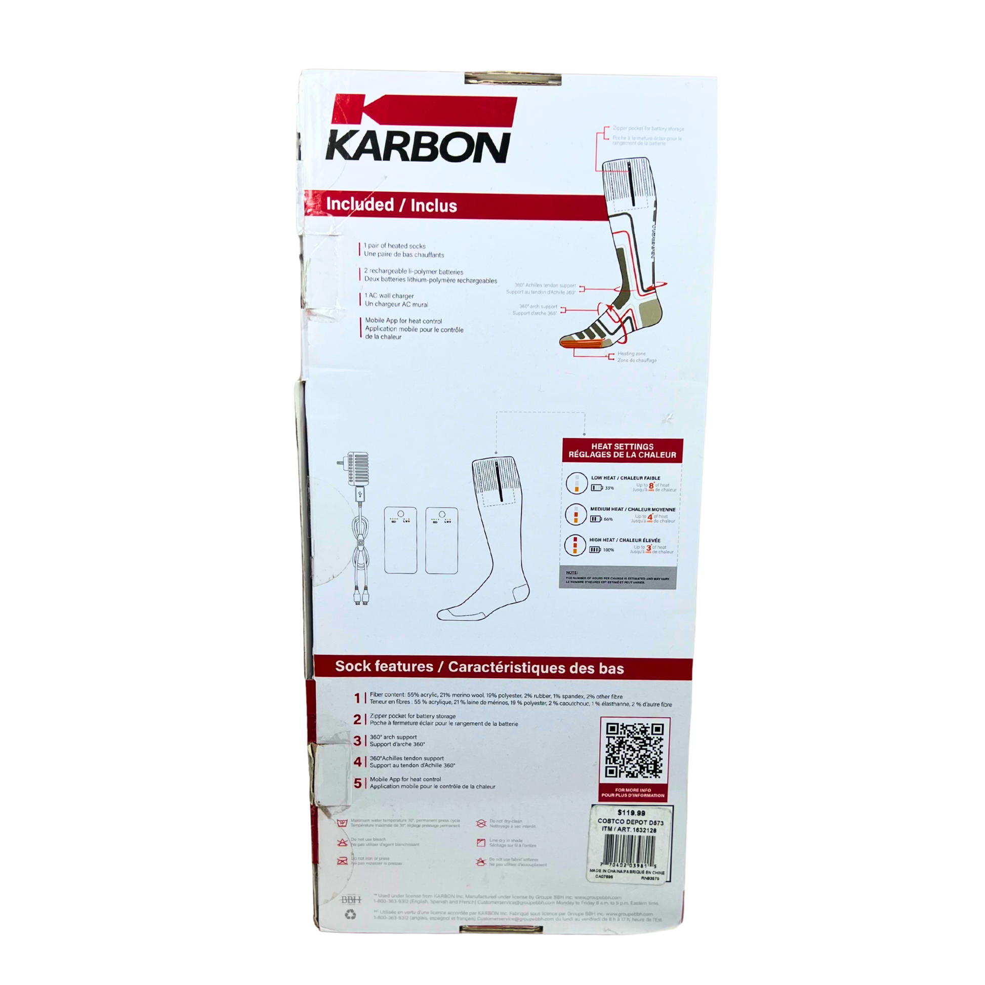 - Three adjustable heat settings with smartphone or on-sock control