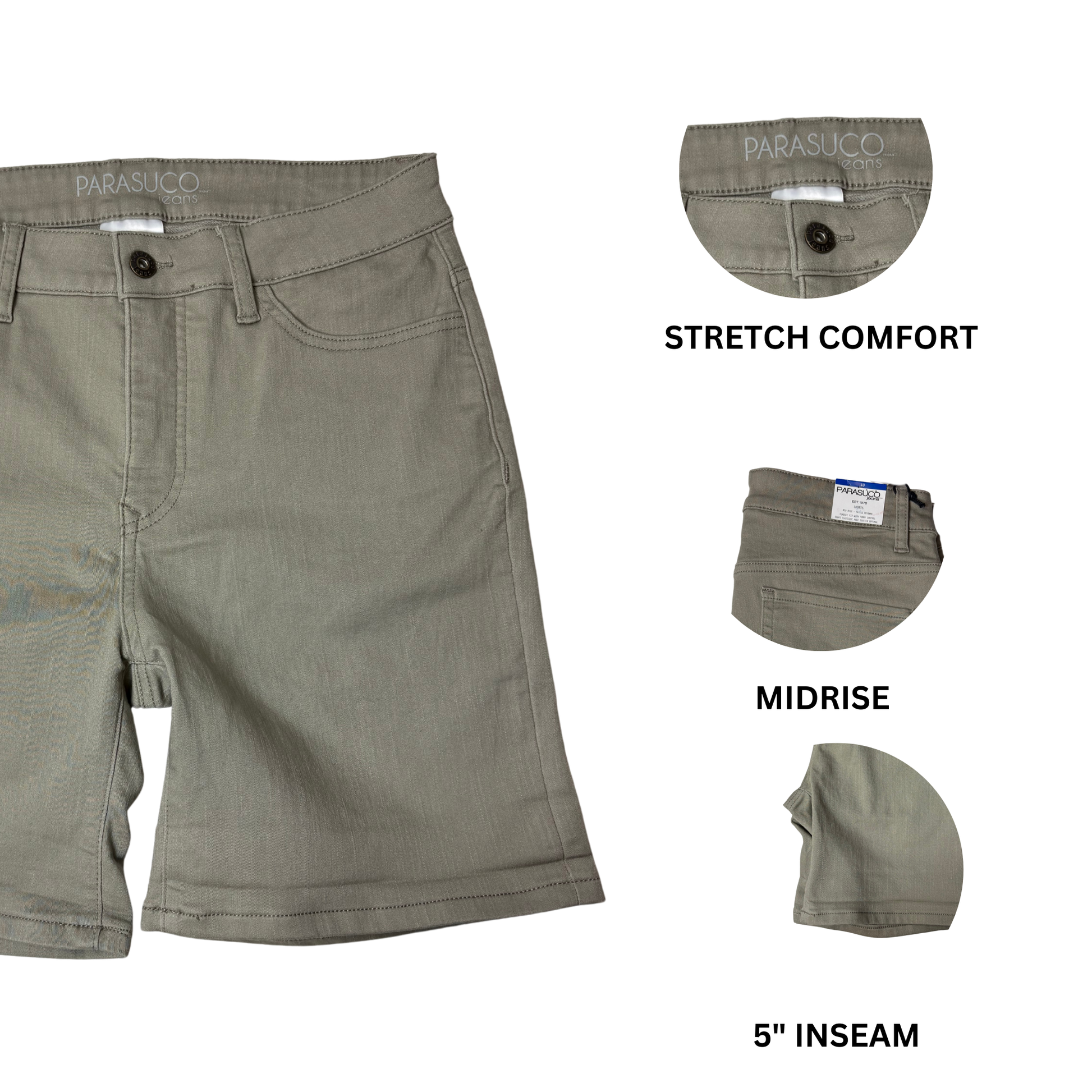 Stylish light green denim shorts featuring a mid-rise, classic fit, gentle tummy-control panel, and a 5" inseam. Designed for comfort, versatility, and a flattering everyday look.