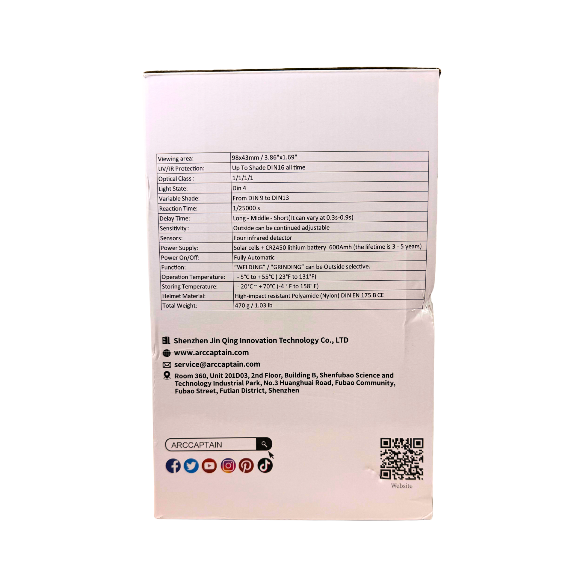 - Auto-darkening lens with 4 high-sensitivity arc sensors