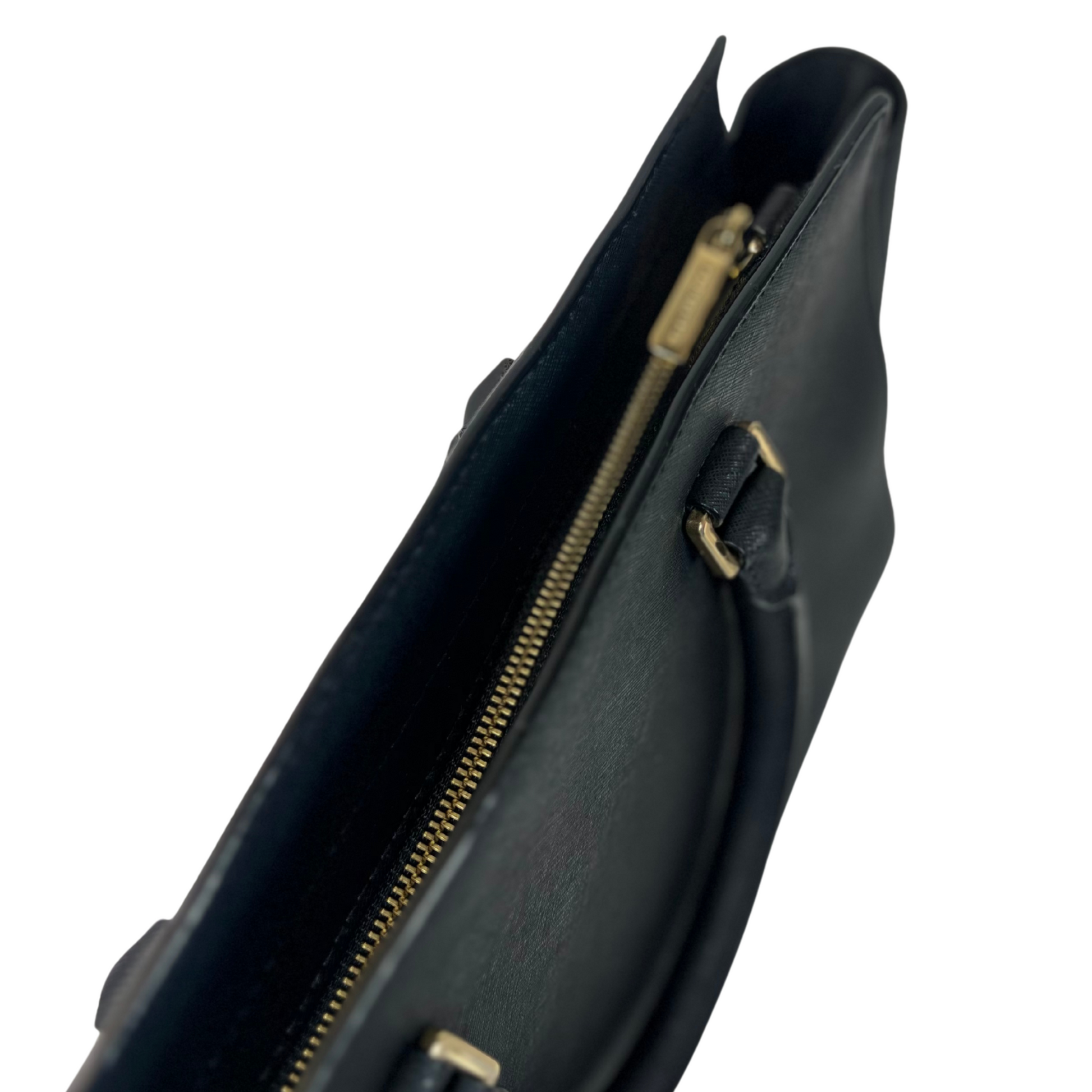 Black Saffiano Leather Medium Satchel with Top Zip & Adjustable Strap | Pre Loved