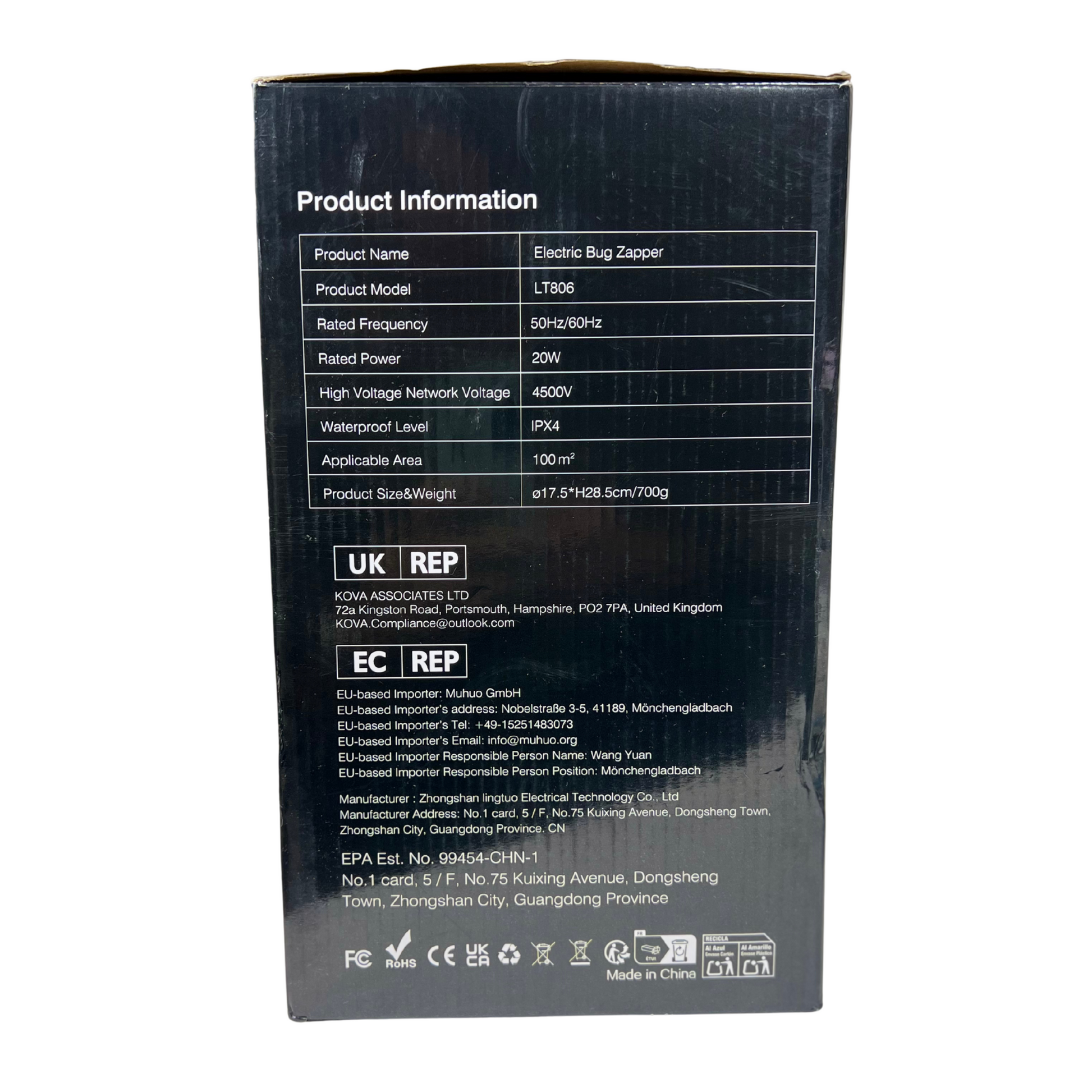 - High-intensity 20W UV light lures and eliminates flying insects instantly