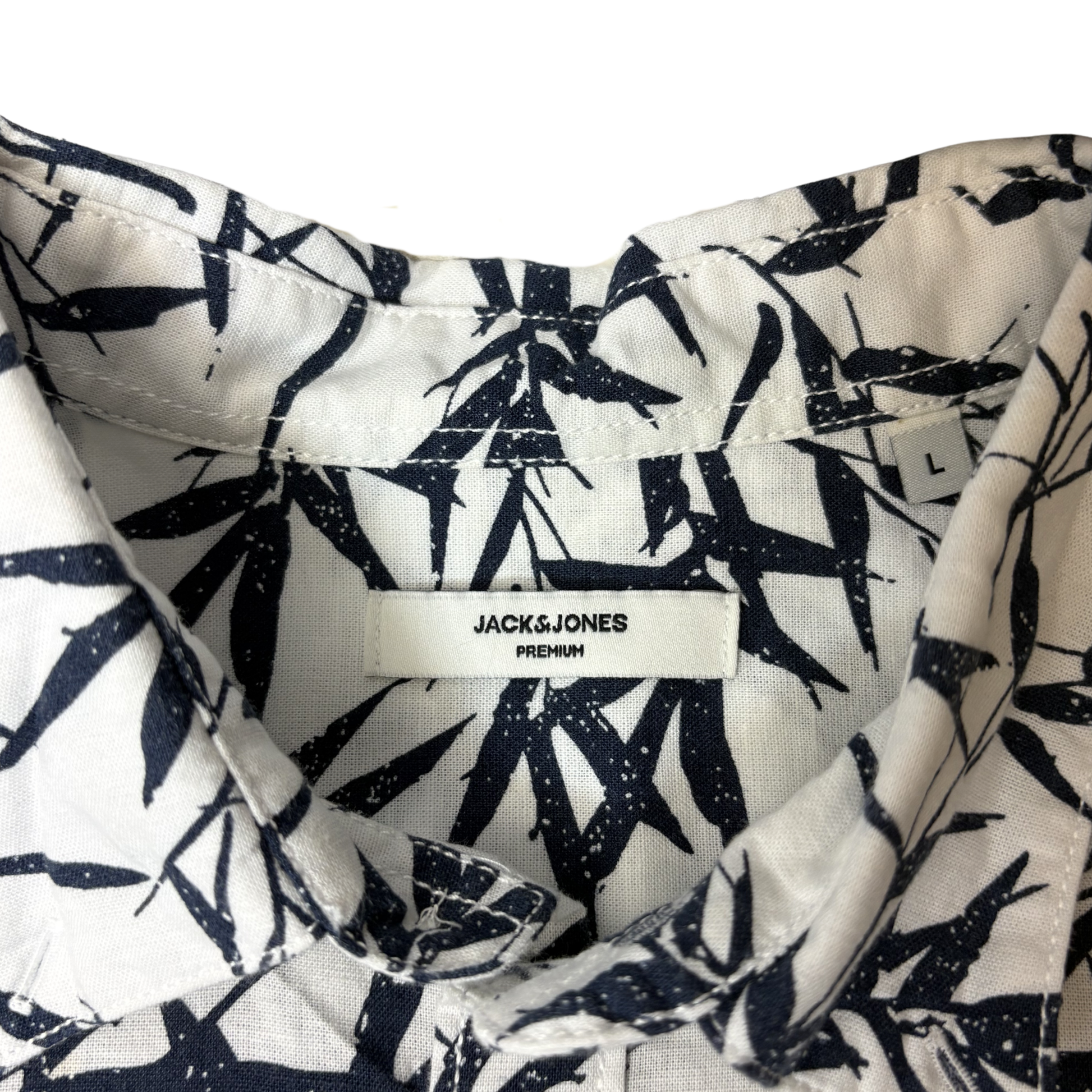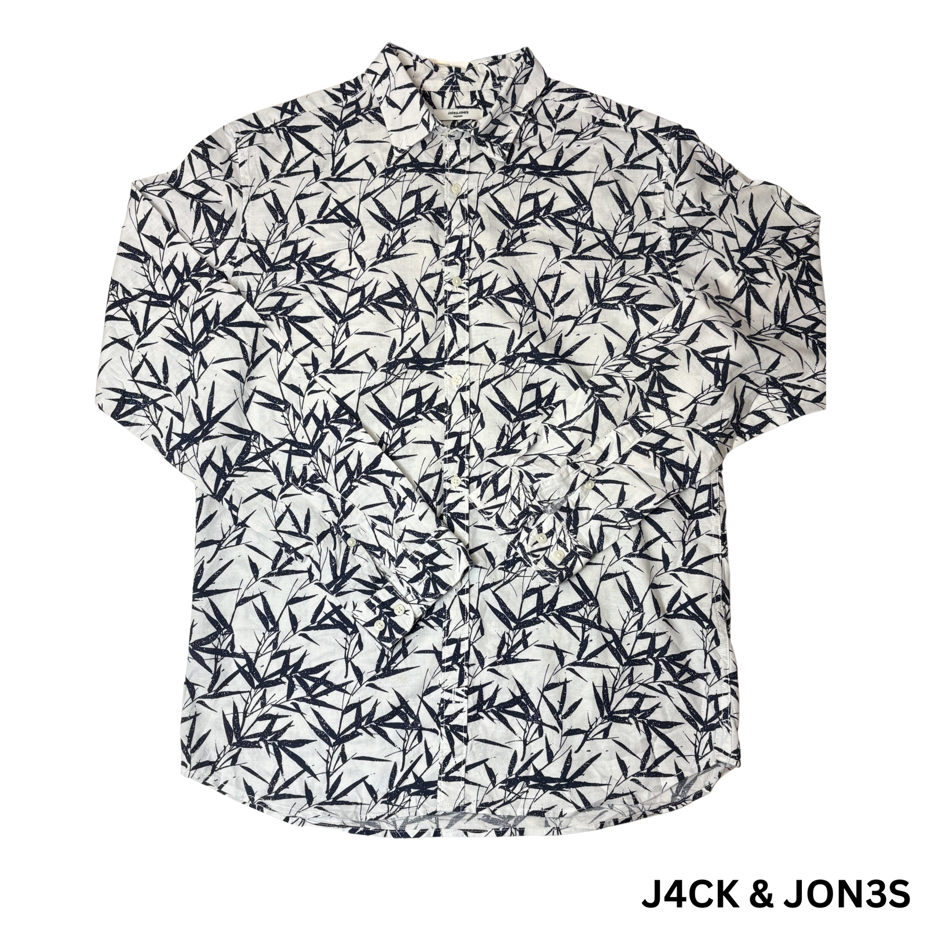 Men’s Leaf Pattern Long Sleeve Button-Down Shirt – Size L